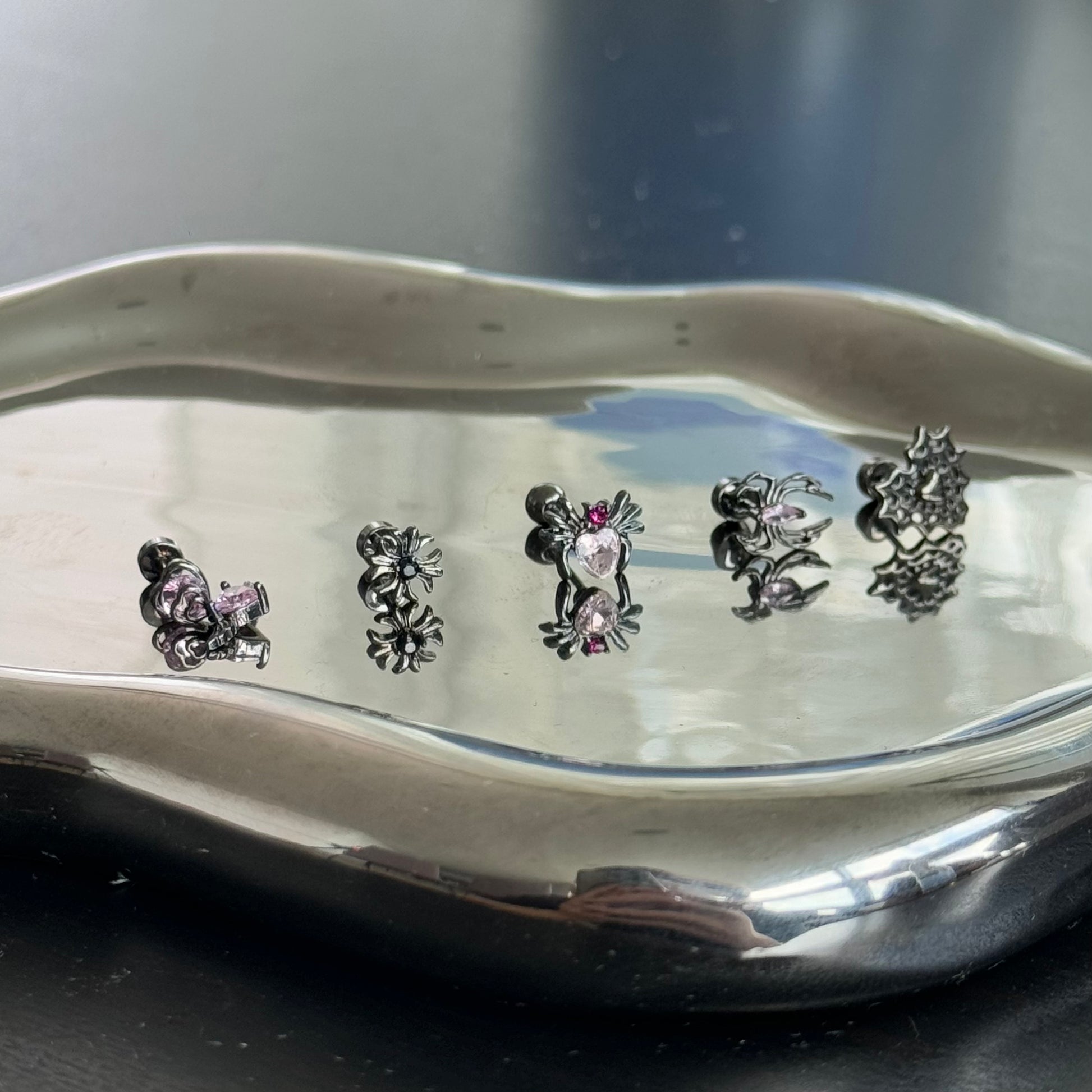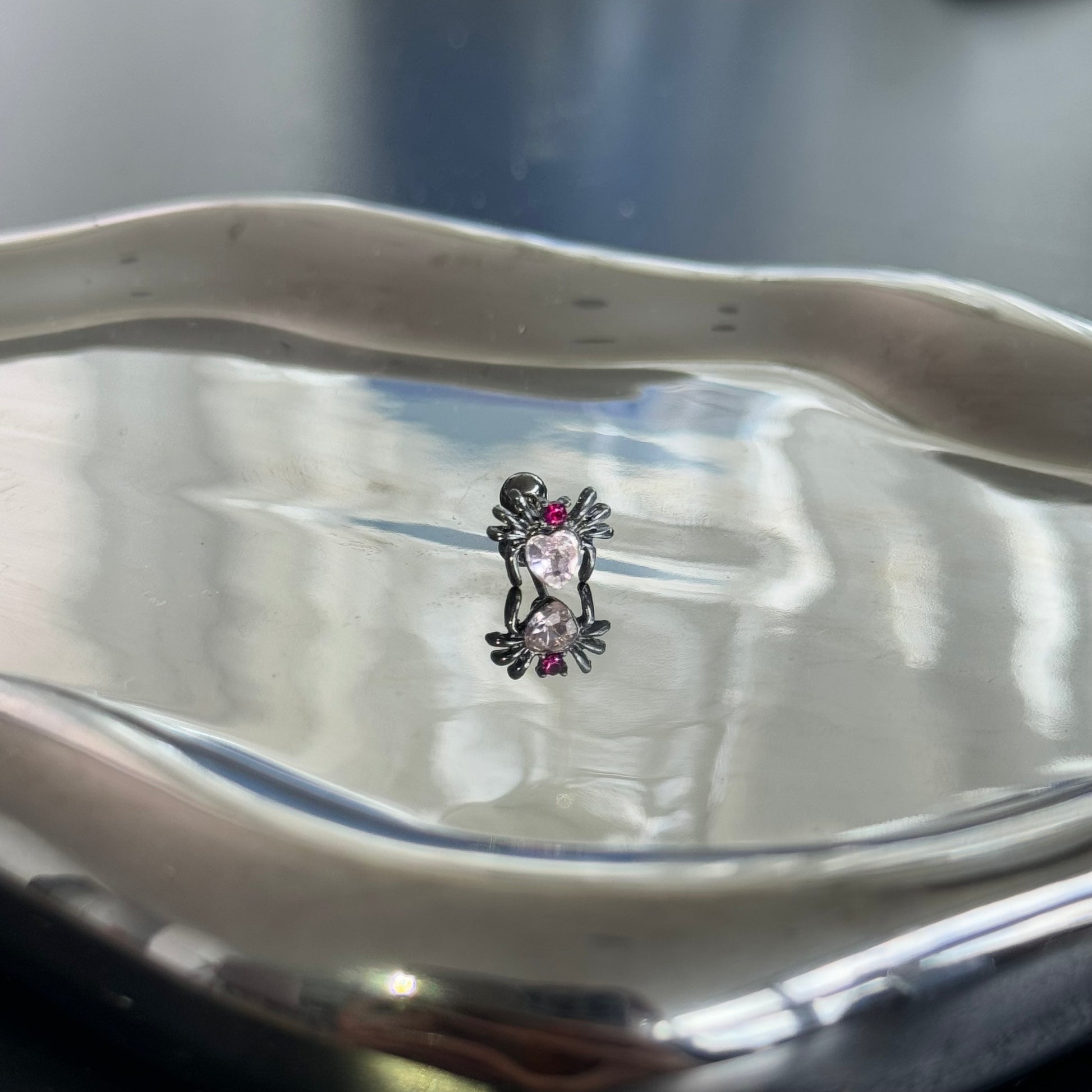 “For the elegantly macabre: where eight-legged guardians meet diamond frost.”