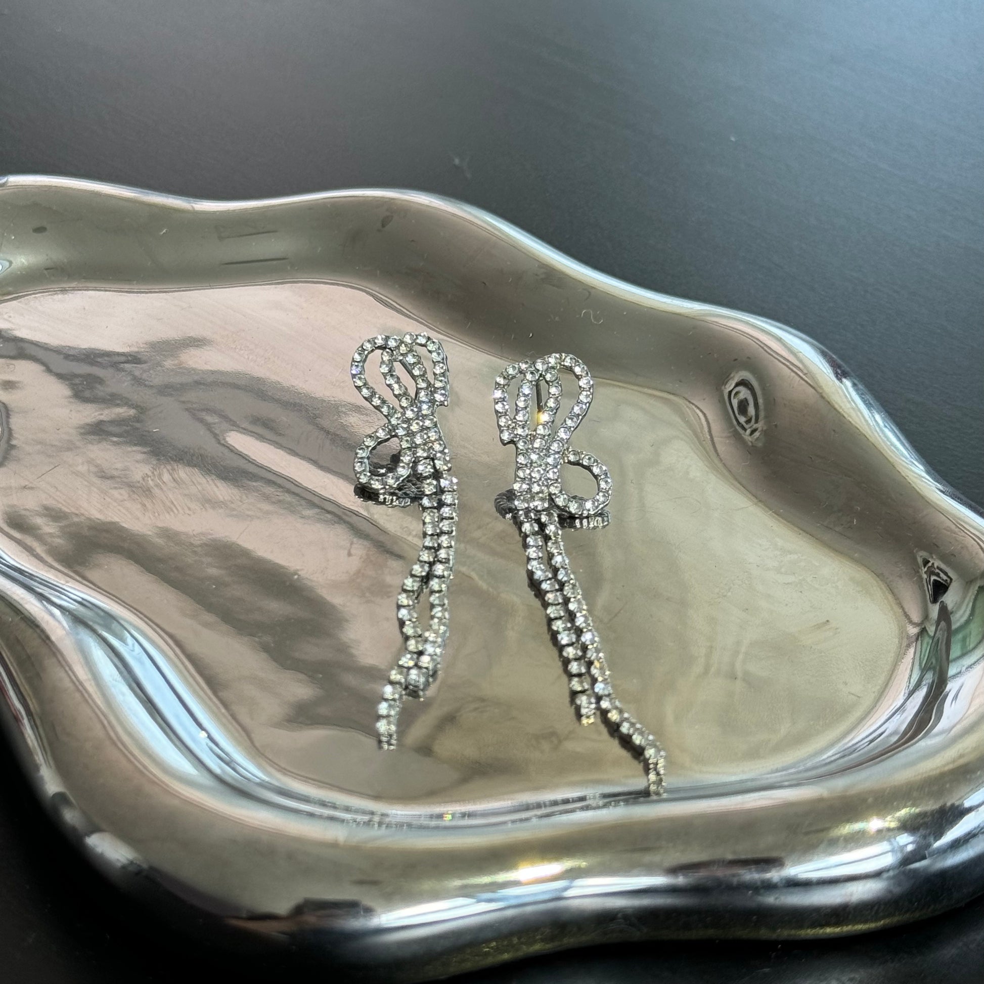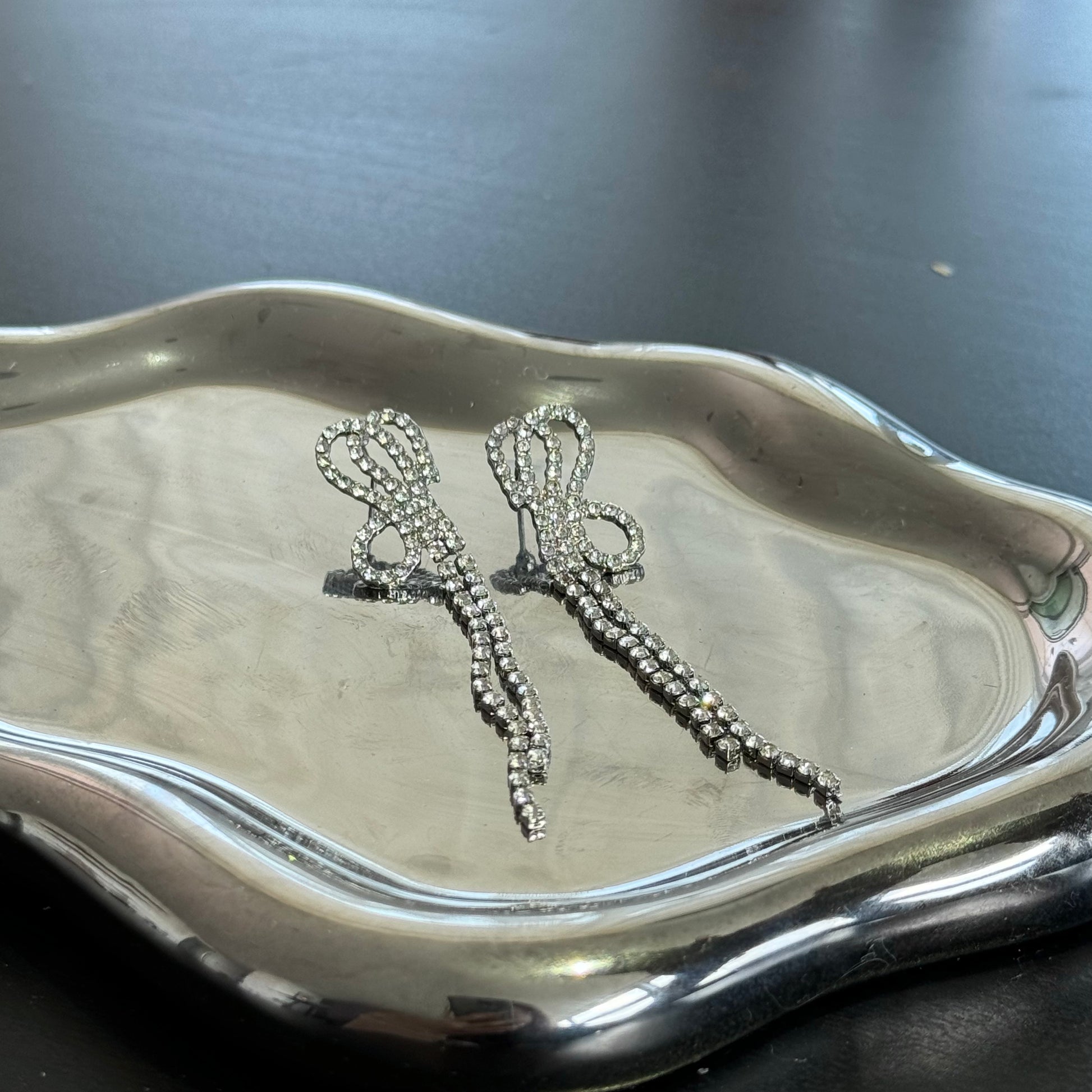 Bow-knot LongTassel Full Diamond Earring S925 Silver Safe