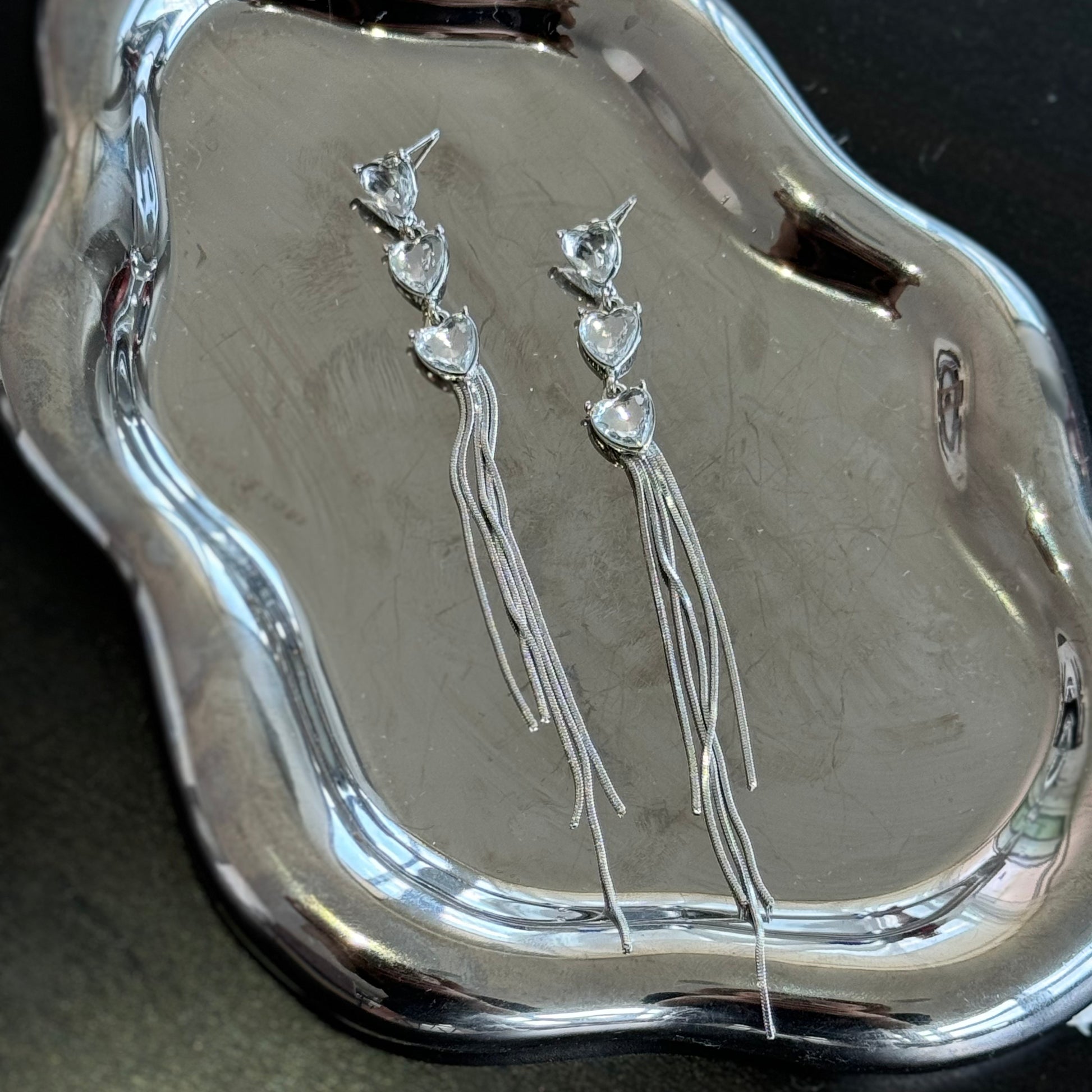 Diamond Heart Stacking Pendant Tassel Silver Earring