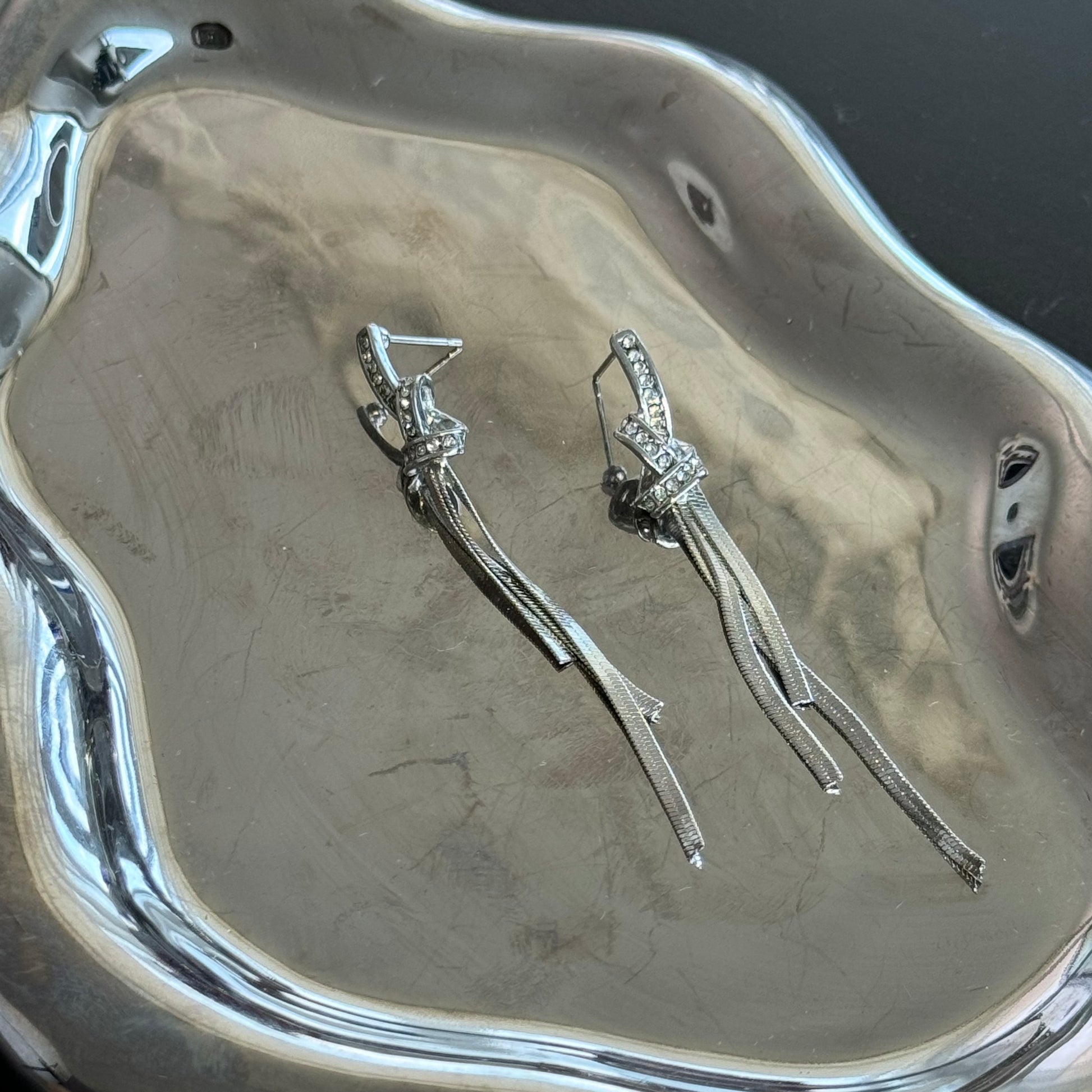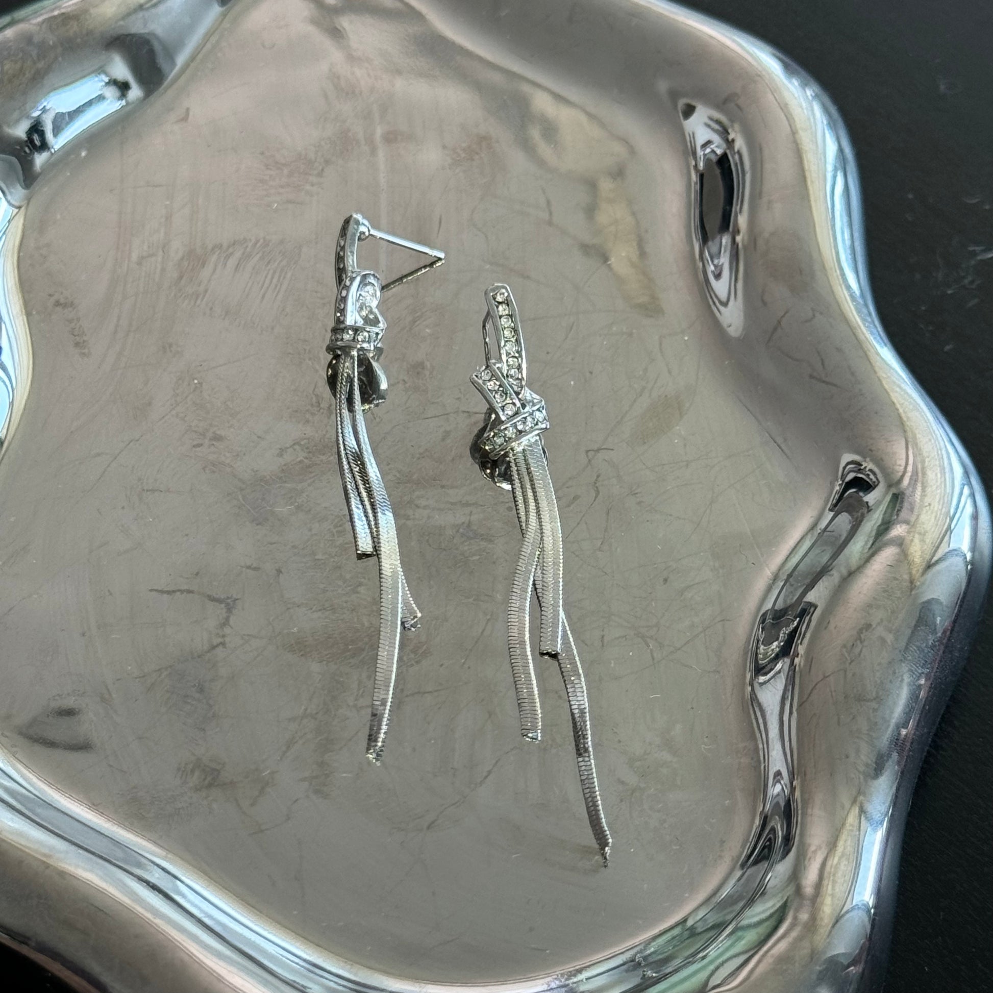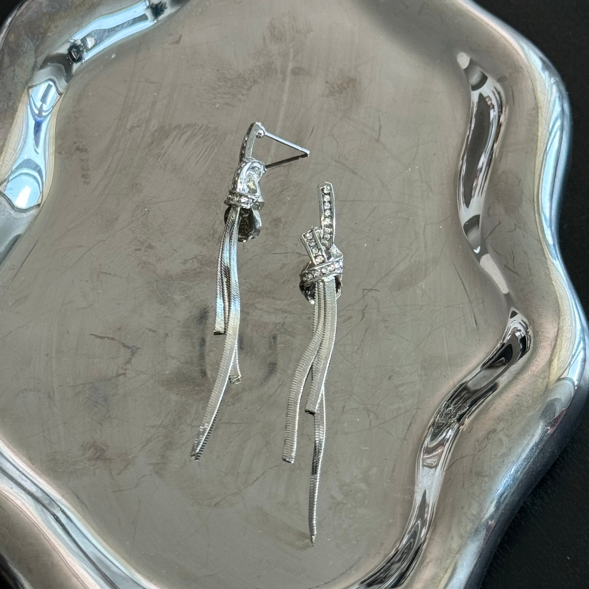 Diamond Knot Long Tassel Silver Earrings • S925 Sterling Silver • Eternal Motion