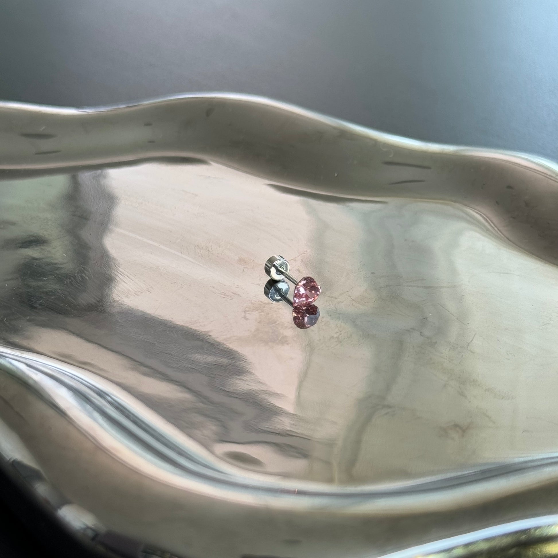A heartbeat made visible. Suspended on a whisper-thin titanium steel post, this 4mm pink diamond heart pulses with romantic brilliance. Precision-set in gleaming silver-tone metal and secured by an outer-threaded flat back, it’s more than jewelry—it’s a tiny manifesto of love for your cartilage. Hypoallergenic, featherlight, and fiercely secure.