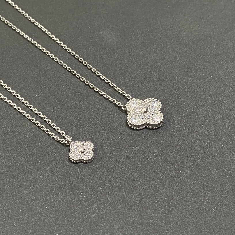 Silver Full Diamond Necklace • Four Leaf Clover Single Elegant