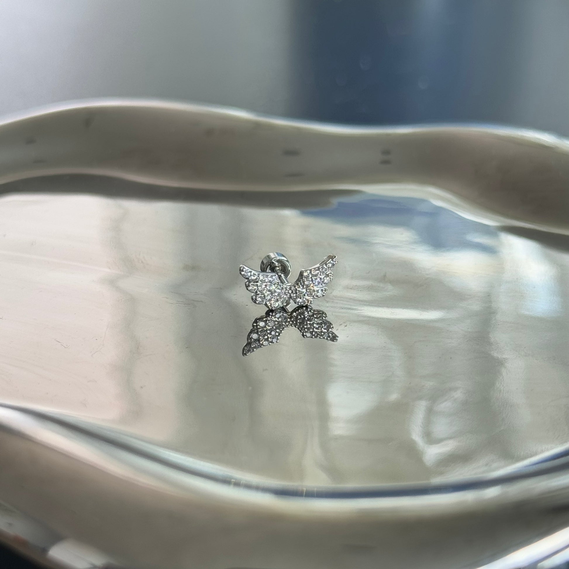 Suspend a whisper of freedom on your ear. These delicate wing helix earrings feature a 14mm feather-light silhouette pavéd with 85+ brilliant diamonds, capturing the ethereal grace of angel wings in motion. Crafted in hypoallergenic titanium steel or lustrous silver, the anatomically curved design hugs your cartilage while the outer-threaded flat back delivers unwavering security—turning everyday moments into flights of sparkle.